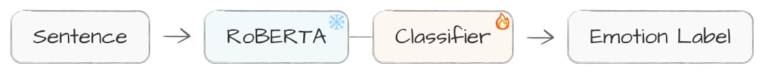 분류 모델은 RoBERTa+Classifier 형태를 가져요. 따라서 RoBERTa는 학습되지 않도록 하고, Classifier 가중치만 학습시켰어요. 학습된 모델과 해결하려는 문제가 동일하기 때문에 효과가 있을 수 있죠.