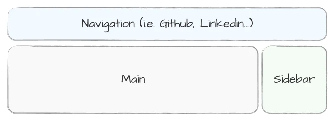 제품을 사용할 유저 페르소나는 2024년의 저입니다. AI를 공부하며 블로그를 작성하는 학생·취준생·주니어죠. 이런 사용자는 크게 3가지 니즈가 있다고 생각했어요. 먼저, 수식과 코드 블록을 지원해야 해요. AI를 공부하다 보면 수식과 코드가 빠질 수 없어요. 그런데 수식과 코드 블록을 지원하는 스킨이 많지 않아요. 프론트를 잘 모른다면 직접 수정하기도 번거롭죠. 두 번째 니즈는 프로필 노출이에요. 주니어의 개인 블로그는 단순히 정보 전달에서 그치면 안 된다고 생각해요. 블로그는 본인이 어떤 사람인지 알리는 공간이기도 해요. 그래서 독자가 글이 마음에 들면, 계속 블로거에 대해 찾아볼 수 있도록 공간을 설계해야 한다고 생각했어요. 이를 위해, 커스텀 가능한 사이드 바와 상단 네비게이션이 있으면 좋겠다고 생각했어요. 아래 그림처럼 말이에요.