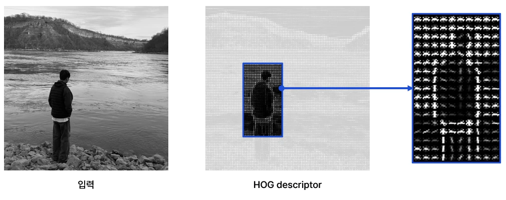 계산된 descriptor는 SVM에 입력되기 전 detection window로 조각조각 나눠져요.