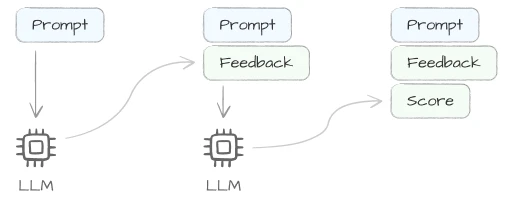 모델이 스스로 답변을 평가하고 피드백을 바탕으로 출력을 수정하는 과정을 self-correction, self-refinement 또는 self-critique라고 불러요. 이 방법은 LLM-as-a-judge를 사용하는 것 대비 명확한 장점이 없어 보여요. 스스로 피드백하는 경우 성능 향상이 없거나 오히려 떨어졌다는 연구도 있어요. 앞서 언급했듯 스스로에 대해 좋게 평가하는 경향이 있어 객관적인 판단이 어려운 것으로 보여요.