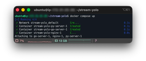 여기서 자연스럽게 이런 의문이 생겼어요. 그렇다면 내가 만드는 AI 서비스도 Go로 구축하면 더 빨라질까? 이 궁금증을 해결하기 위해 YOLO를 이용한 실시간 객체 인식 서버를 구축했어요. 각각 Python과 Go로 서버를 구현하고 동일한 부하를 줬을 때 지연 시간과 CPU 사용률을 비교하려고 했어요.