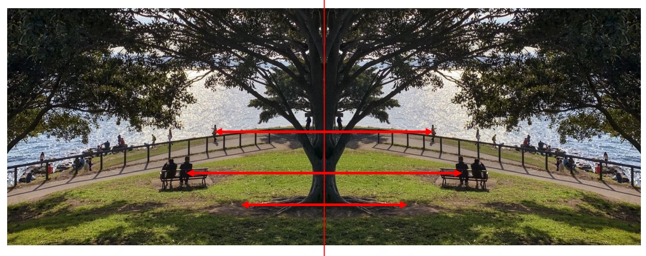 수평 대칭인 이미지의 y 좌표는 같고 x 좌표의 부호만 변해요.