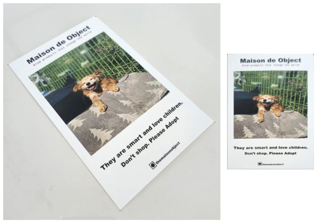 다행히 OpenCV의 getPerspectiveTransformation을 통해 쉽게 변환 행렬을 얻을 수 있어요.